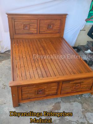 KERALA TEAK WOODEN COT WITH 4 STORAGE [6.25 feet * 6 feet ]